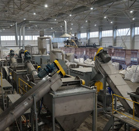Далее материал подается в Ванну флотационной мойки № 2 (11),в которых происходит отделение крышки и этикетки от флэкса и финишное полоскание материала перед подачей в следующий узел линии мойки.