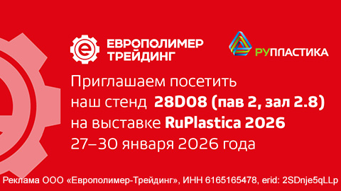 Компания «Европолимер-Трейдинг» приглашает вас на главное событие в мире полимеров — международную выставку «РУПЛАСТИКА – 2026», которая пройдет с 27 по 30 января в московском МВЦ «Крокус Экспо».